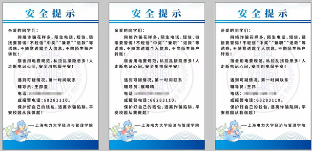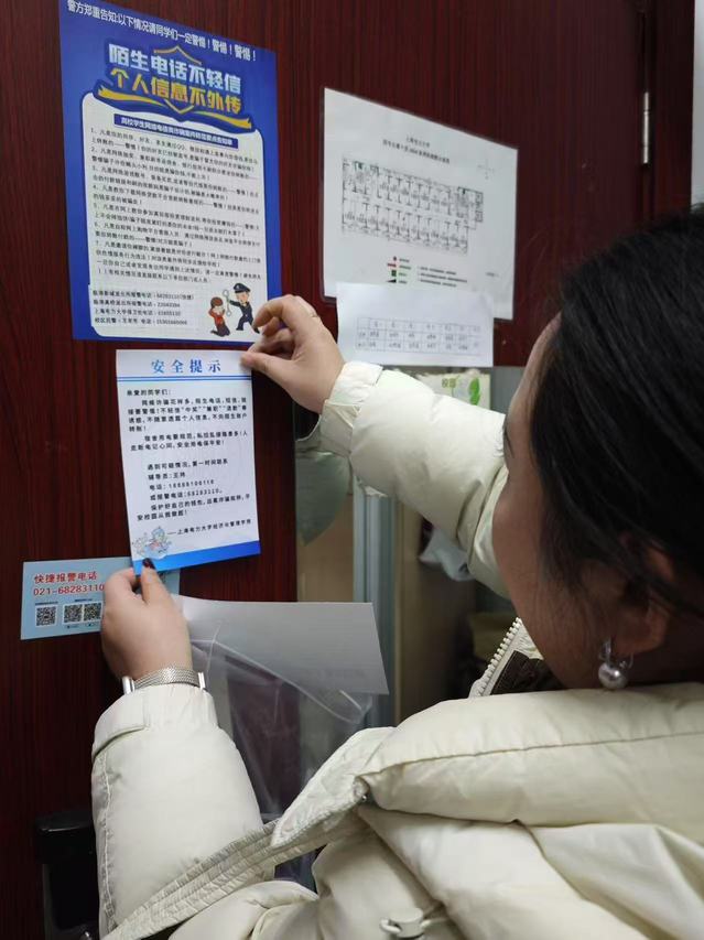针对员工宿舍这一重点区域,学院组织辅导员和员工志愿者深入每间寝室,在门后位置张贴防诈骗安全提示贴纸,内容涵盖“刷单诈骗”“冒充客服”“虚假贷款”等常见骗局识别要点,确保员工随时可见、随时学习。