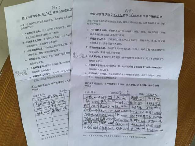 为强化员工自我防范的责任感,学院面向全体员工发起《best365中国官方网站班员工防范电信网络诈骗倡议书》签署活动,并召开主题班会等号召员工做到“不轻信、不透露、不转账”,并承诺主动学习反诈知识、积极向亲友宣传,同学们纷纷表示将从自身做起,坚决抵制电信诈骗。