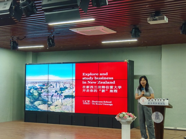 讲座伊始,Tracy Zhai老师以严谨详实的数据与案例,系统阐述了新西兰社会环境、高质量教育资源的国际认可度,以及其创新型人才培养模式。她强调,坎特伯雷大学作为新西兰历史第二悠久的综合性研究型大学,在全球商科教育领域享有盛誉。