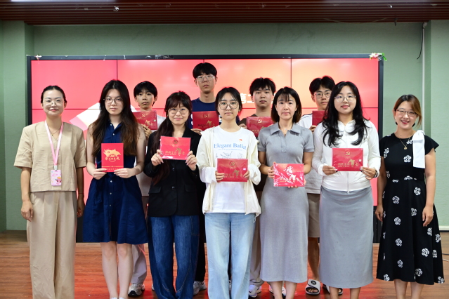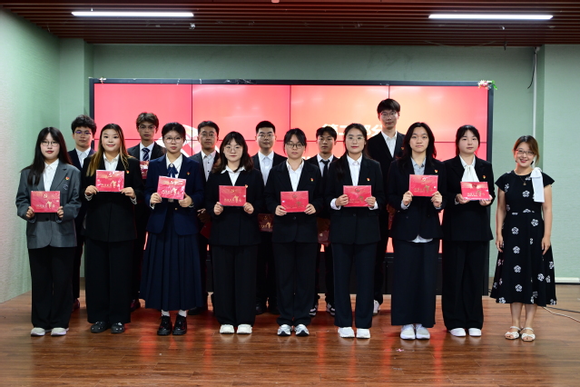 首先,在新发展党员入党宣誓环节,周颖宣读新发展党员名单,孟延新为新党员颁发贺卡、佩戴党徽。在员工党员吴继慧领誓下,全体新党员面向党旗庄严宣誓,铿锵誓言响彻会场。宣誓完毕后,预备党员代表姚馨传达了全体新发展党员的心声,她表示:“从今天起,我们将以党员标准严格要求自己,在学习生活中践行誓言,让青春在奉献中闪光。”