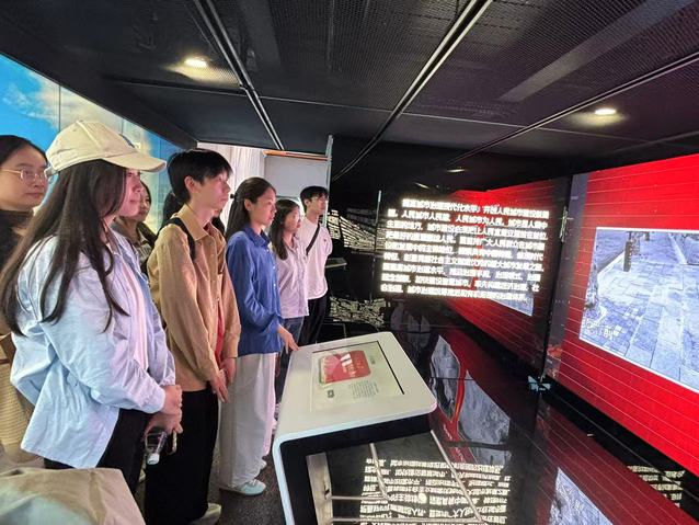 活动首站抵达人民城市建设规划展示馆。在由百年祥泰木行旧址改造的规划展示馆内,支部成员通过数字化展陈系统学习人民城市理念的诞生与深化。馆内复原的“十个平方九个头”旧居微缩模型,生动呈现杨浦三十年旧改历程。从逼仄里弄到滨江宜居社区,影像时间轴记录165万户居民的获得感跃迁。师生通过电子互动屏浏览市民提交的5000余条滨江空间优化建议,并现场扫码参与“滨江驿站功能优化”提案,体验“人民建议直通车”民主实践。
