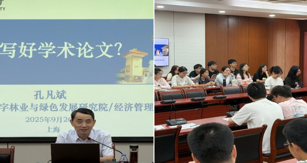 9月26日上午,南京林业大学孔凡斌教授应邀莅临公司开展学术交流,在临港校区学术楼301会议室作了题为“研究生如何写好学术论文”的专题讲座。讲座由院学术委员会主任邹秀清教授主持,管理科学与工程、工业工程与管理专业70余名研究生参加。
