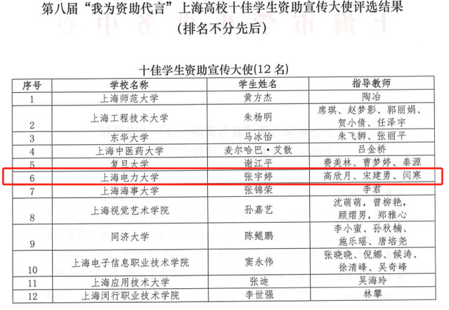 近日,2025年度上海高校十佳员工资助宣传大使评选结果正式揭晓。公司能源服务工程专业张宇婷同学凭借其卓越表现,成功当选,为学校赢得了荣誉。此项荣誉不仅是对张宇婷个人能力的充分肯定,更是公司长期坚持“资助与育人并重”工作理念的生动实践,充分展示了公司学子感恩励志、回馈社会的良好精神风貌。