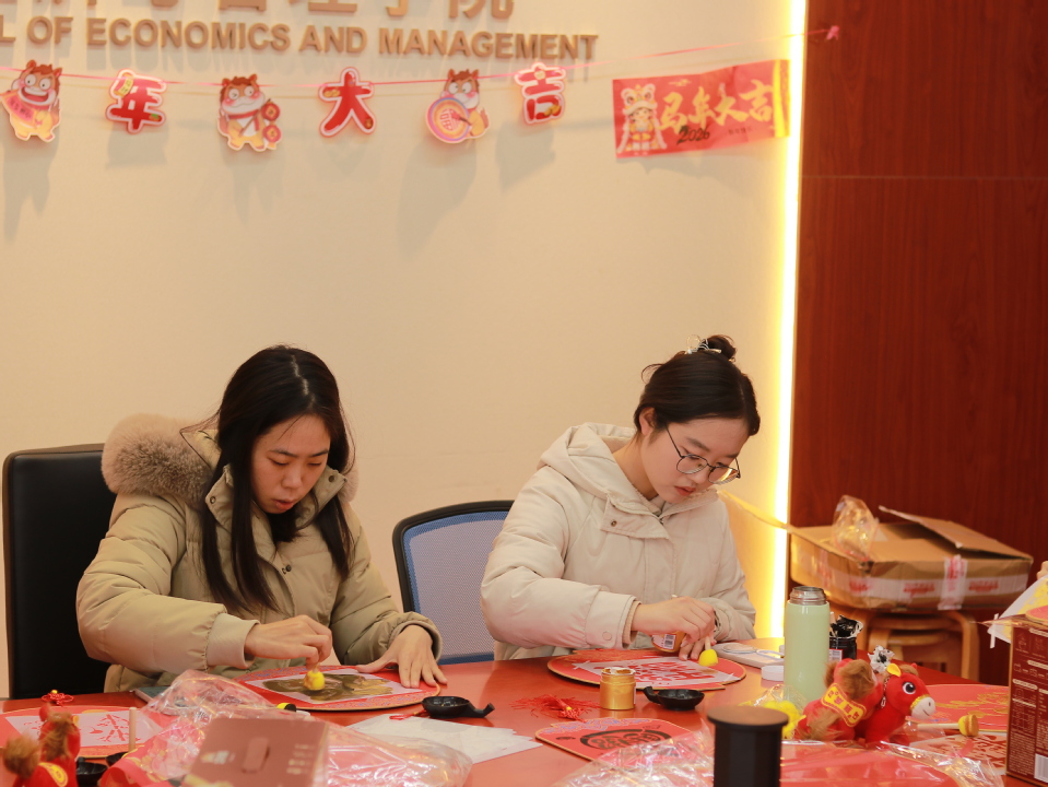 慰问座谈会圆满落幕之后,学院精心筹备了留校员工新春联欢活动。同学们欢聚一室、暖意相依,共同参与了“迎春送福”拓扇及剪窗花活动。活动过程中,大家满怀热忱、全情投入,动手拓印了一份份精美的扇面,将“福”字书写在纸面、将窗花剪出各色形状,在动手实践中传承传统文化、陶冶情操。整场活动氛围轻松和睦、暖意融融,一件件凝聚着同学们巧思与心意的手工作品相继诞生,每一件作品都承载着大家对马年新春的美好向往与真挚期盼。