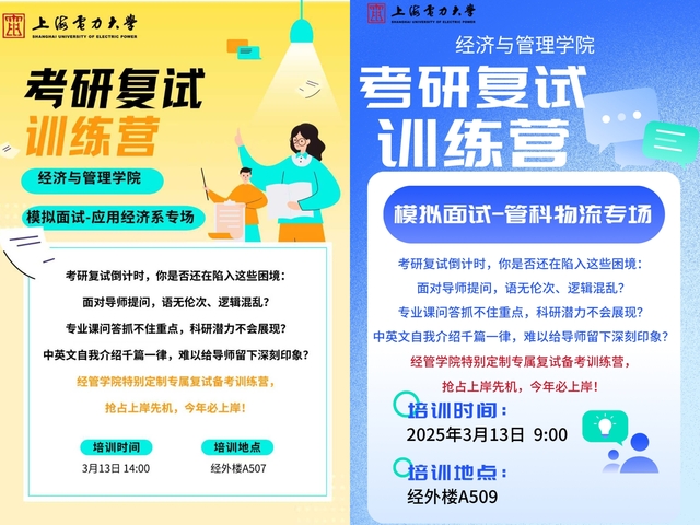 考研复试攻坚在即,为助力学子从容应对复试挑战、提升面试核心竞争力,切实解决备考过程中的困惑与难题,经济与管理公司精心策划并启动考研复试训练营,涵盖分专业模拟面试、复试及调剂经验分享等多项针对性活动,以“模拟实战+经验传递”双轮驱动,全方位为学子研途冲刺保驾护航。