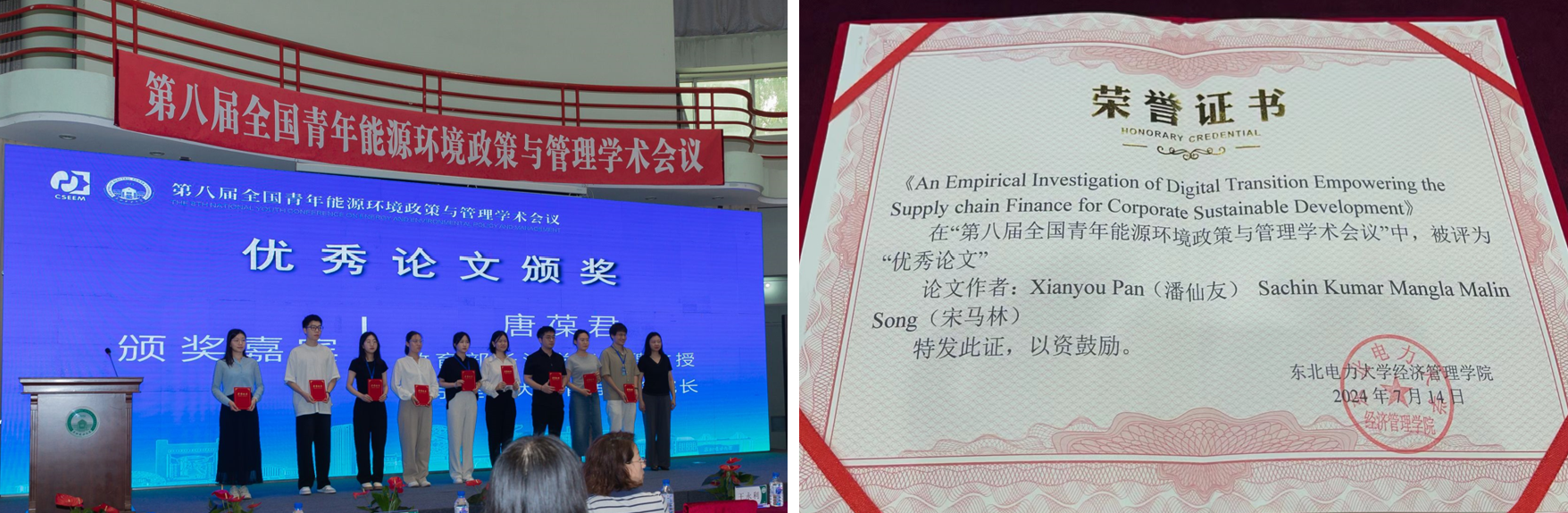 7月13日至14日,由中国“双法”研究会能源经济与管理研究分会、东北电力大学联合主办的第八届全国青年能源环境政策与管理学术会议在东北电力大学召开,公司教师潘仙友及多名硕士研究生应邀参加会议并在平行论坛环节做主旨演讲。