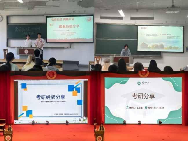 工程管理系员工党支部姚利民、李经纬为2021级工程管理专业同学进行考公、考研经验分享,倾囊相授复习技巧;管理科学与工程系员工党支部王嘉怡、栗国丽进行考研经验分享,为同学们如何调整备战考研心态提供思路和方法;应用经济系员工党支部张诗晗作留学经验分享,提醒同学们做好时间管理,分阶段完成留学毕业等准备工作。
