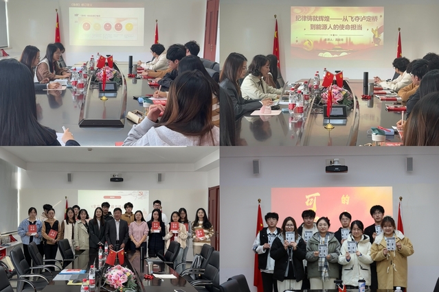 在发展对象培训班中,专职组织员周颖从“提高政治站位,扎实做好发展党员工作”入手,详细阐述了发展党员的流程和重要性。党支部书记展晴晴带头领学《中国共产党纪律处分条例》,结合党史上的一些关键事件,强调了党内的严明纪律对于保持党的先进性和纯洁性至关重要。党支部书记高欣月讲授了《纪律铸就辉煌——从飞夺泸定桥到能源人的使命担当》,通过讲述飞夺泸定桥的英雄事迹,结合当前新时代能源事业的发展,鼓励同学们要将红色精神与自身使命结合起来,担负起新时代的责任和担当。